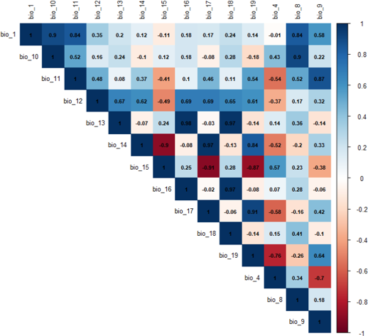 Bioclimatic variables are derived from the monthly temperature and rainfall values in order to generate more biologically meaningful variables. These are often used in species distribution modeling and related ecological modeling techniques (WorldClim, n.d.).