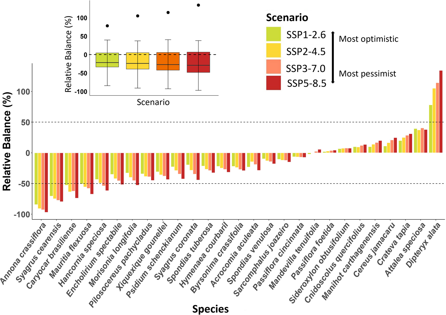 The species with the highest projected losses in climatically suitable areas were those that contribute substantially to the income of local populations.