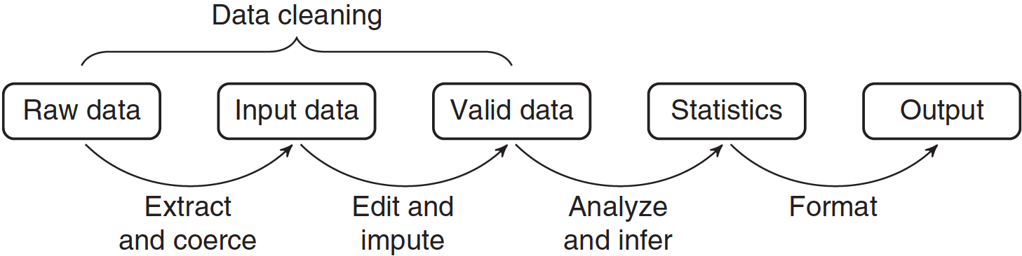 “A value chain, roughly, consists of a sequence of activities that increase the value of a product step by step. […] One should realize that although the schema nicely organizes data analysis activities, in practice, the process is hardly linear.”