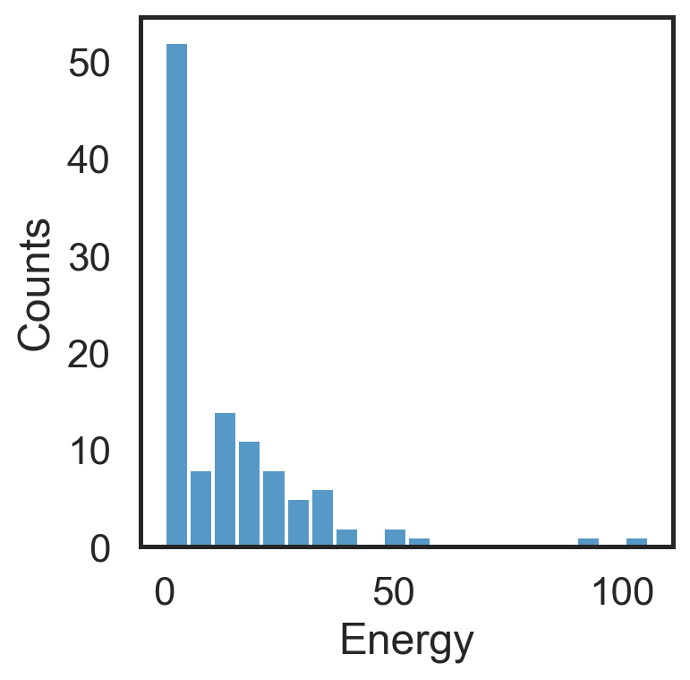 sns.histplot(energy_wolves, kde1].set_xlabel("Energy")