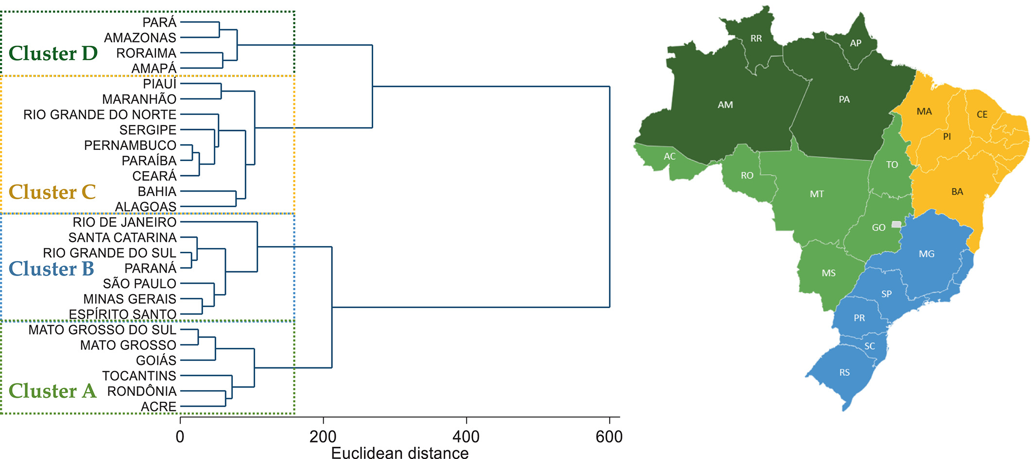 Was there a meaningful difference in ultra-processed food consumption among Brazilian children aged 2 to 4 in 2022 across the clusters B and D of the Revised Multidimensional Index for Sustainable Food Systems (MISFS-R)?