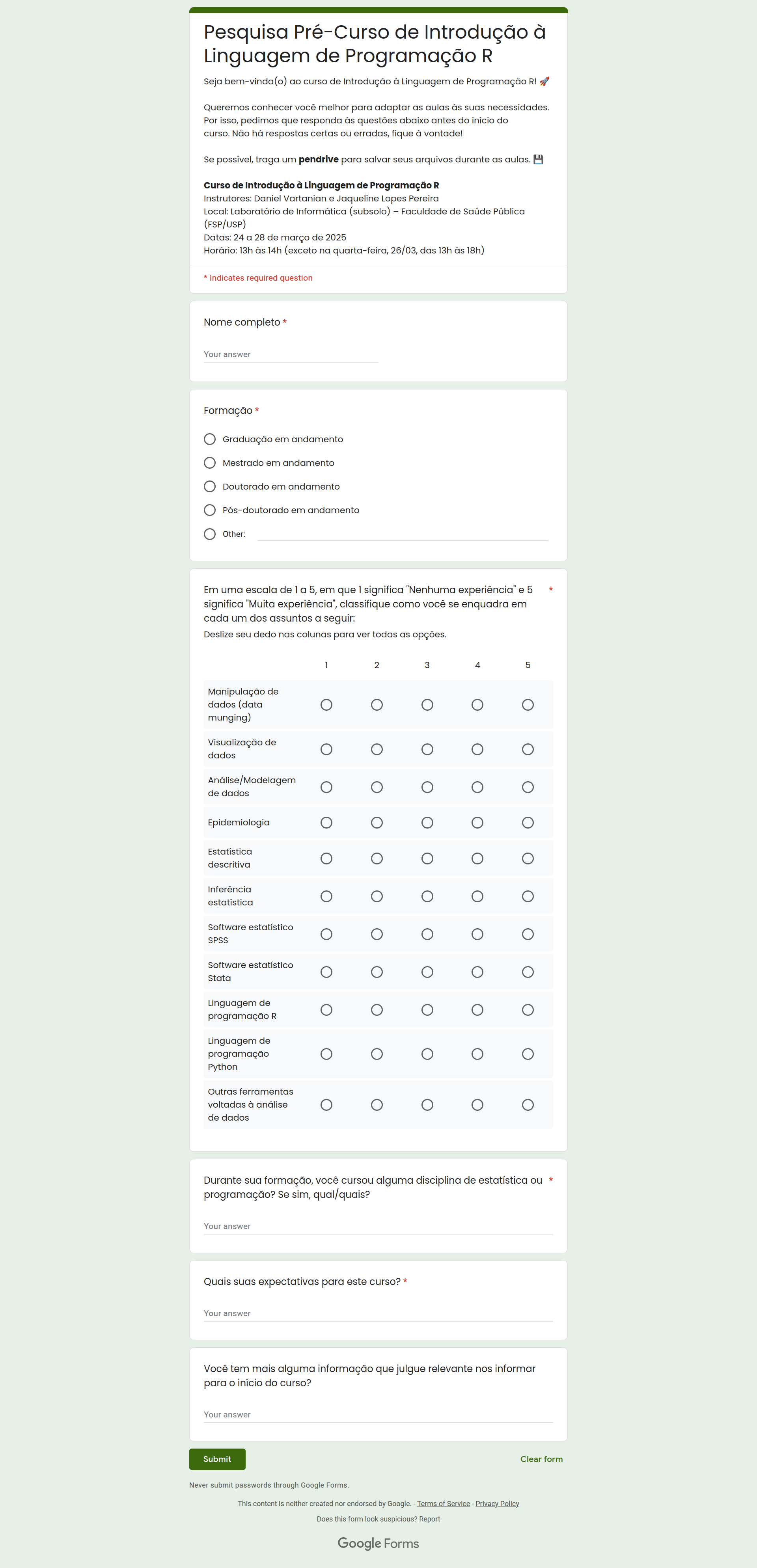 The course will take place in one of the laboratories of the Public Health School (FSP) of the University of SĂŁo Paulo (USP).