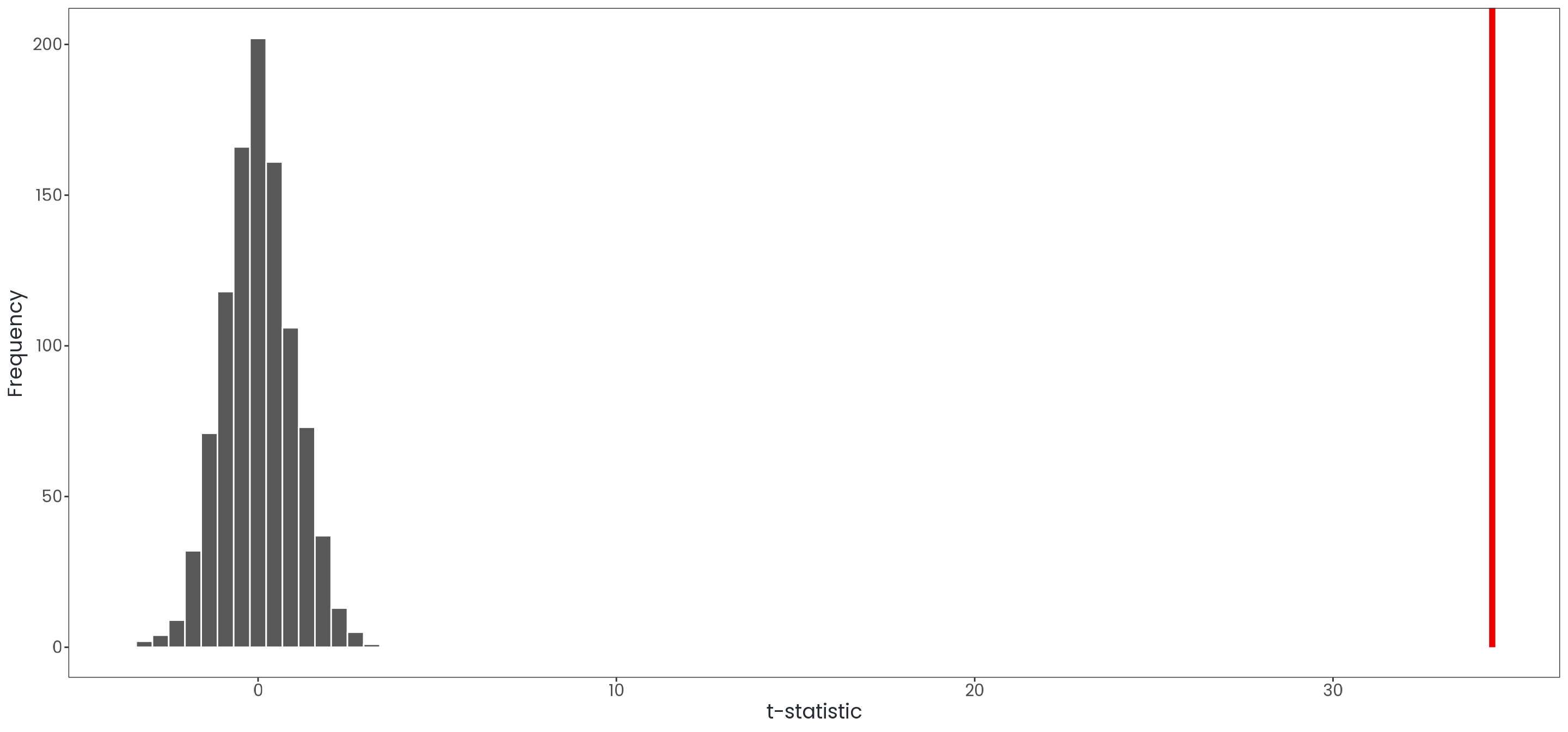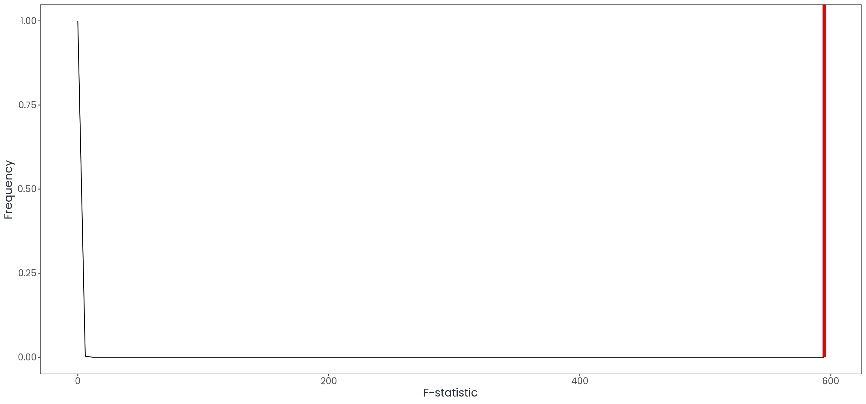Based on these results, we conclude that bill_depth_mm meaningful improve the prediction of flipper_length_mm. Consequently, we reject the null hypothesis in favor of the alternative hypothesis.
