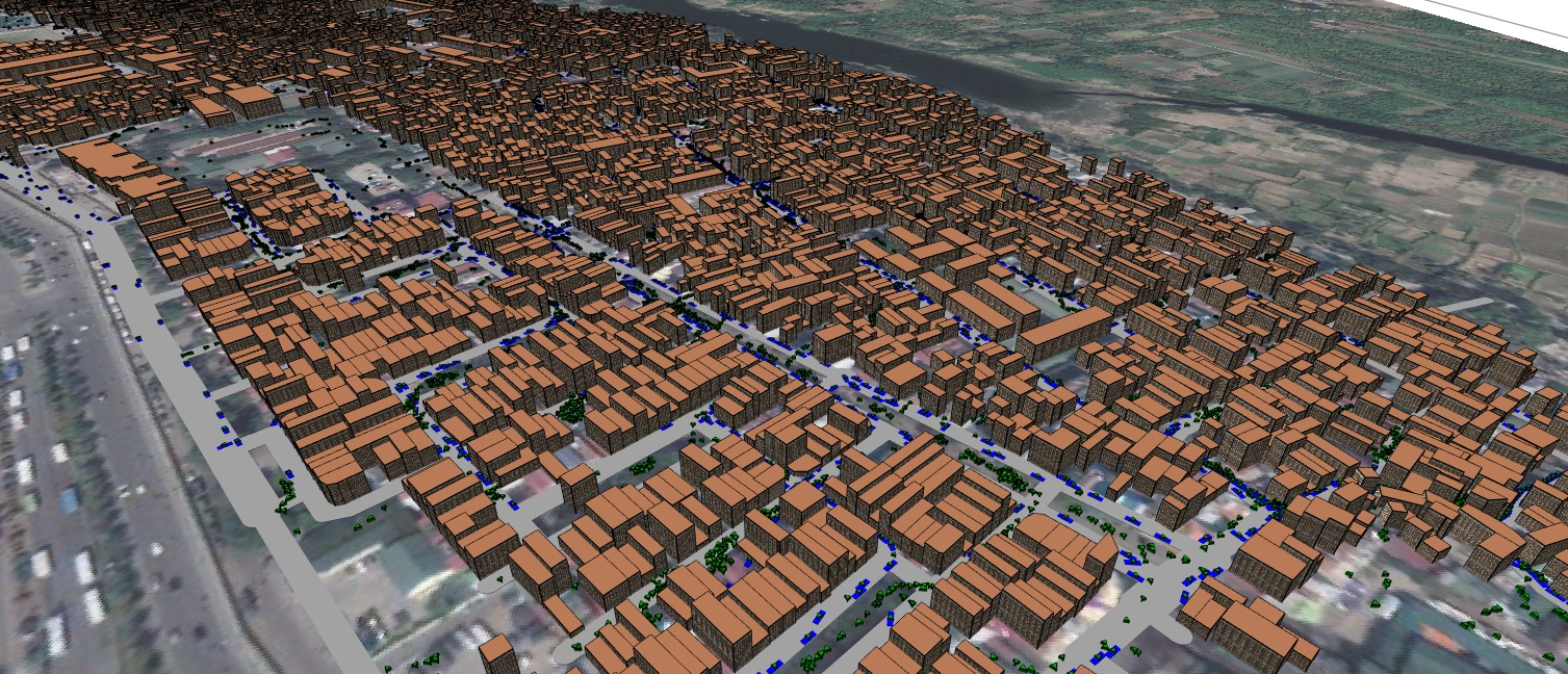Agent-based simulation tool that supports simulation of the evacuation of a city’s population at fine temporal and geographical scales (GAMA/Java).
