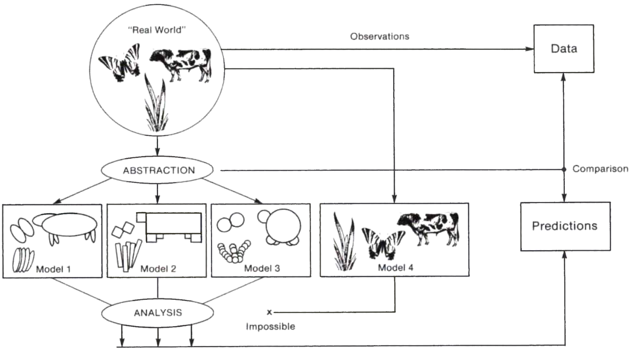Instead of describing a system only with variables representing the state of the whole system (a global approach/top-down), we model its individual agents (a local approach/bottom-up) (Railsback & Grimm, 2019).